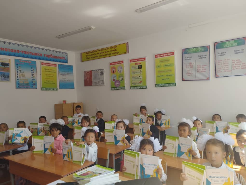 Жалпысынан 160 миң сомдук окуу китептери жана жумушчу дептерлер берилди.